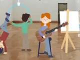 Vi har musikk, billedkunst, sang og dans.